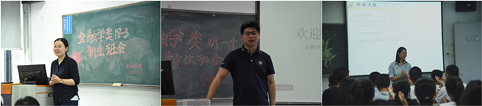 下午16点,七个新生班级分别在公司楼3号楼和7号楼召开了第一次新生班会。各班班主任、辅导员、芮+导师均参加了班会。会上,首先新生们进行自我介绍,来自五湖四海的同学们相聚在一起,全是欢声笑语。之后班主任、辅导员对本专业的基本情况,新生的适应问题和大学的生涯规划做出介绍,希望他们能够在努力学习的同时积极参加第二课堂的活动,丰富自己的老员工活。最后,全体同学与老师们合影留念,并用相机记录下精彩的班级全家福。