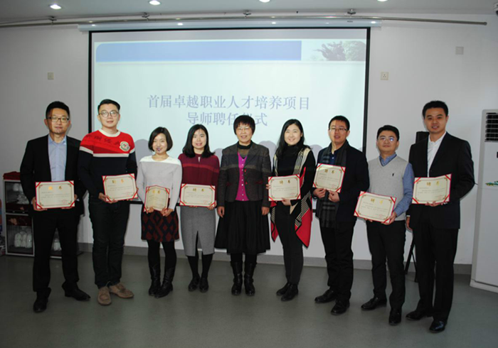 王志梅老师宣读了《关于聘任首届卓越职业人才培养项目导师的决定》,葛仁霞书记为员工导师们颁发聘书并合影留念。