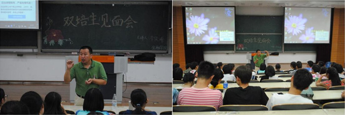 为加强公司对双培生的培养教育工作,解决双培生入学时面临的困惑和问题,9月14日下午13时,双培生见面会在沙河校区东区主教111拉开帷幕,作为主讲人的经理助理李俊峰副教授满怀热情,以幽默风趣的语言活跃现场气氛。李俊峰副教授首先为同学们说明新学期双培生课程的改动与调整情况,详细解析课程设置与相关学分政策,给同学们建立初步的学科概念,激励每一位同学培养认真踏实的学习态度,祝福同学们未来拥有更好的发展。