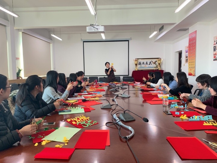 3月7日下午,best365足球官网分工会在公司南路主教913会议室举办了以“传承中华文化,弘扬剪纸艺术”为主题的“三·八”妇女节庆祝活动,特邀请国际文化与交流公司原绍锋教授来进行指导,公司党委书记葛仁霞和二十余位女教工参加了活动。