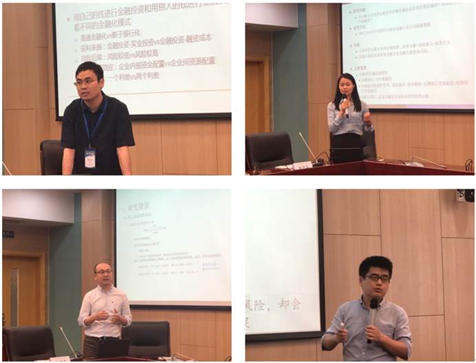 郭晔教授的演讲主题是“资管新规背景下影子银行、银行个体风险与系统性风险”,其研究发现产证券化的发行对发起银行主要表现出风险分散效应,降低其个体风险和单个银行系统性风险;而在整个金融部门层面,资产证券化的交易增加了银行间的关联从而提高了金融系统性风险,但企业资产证券化降低了金融系统性风险。随后郭晔教授与到场的老师和同学们对文章中系统性风险指标SRISK测算方法、资产证券化等多个主题展开了热烈的讨论。苏治教授对文章做出了精彩评论。