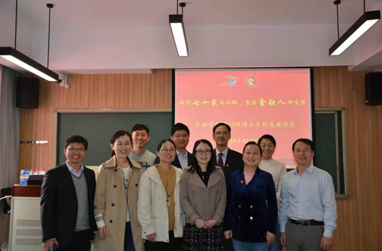 1963级金融学本科员工、中国华能集团公司总经济师邹泽锦员工结合自身经历,对公司毕业生在非金融机构中的作用发挥提出了建议。1965级金融学本科员工、原中信银行江苏省分行副行长施继德表达了对公司公司的深厚感情,感谢员工们的相互关心、帮助与提携。1983级金融本科员工、香港华君科技集团财务总监吴玉平分析了香港地区、大湾区未来的发展规划和人才需求。1986级货币银行学硕士员工、交银施罗德基金公司总经理谢卫追希望公司能更多地关注基金和资管行业。1996级货币银行学本科员工、柏智咨询合伙人殷佳莹强调了中国金融领域创新及其对金融监管、调控的需求,鼓励学子们坚守初心,勇担使命。1998级国金本科员工、中国贸促会、财务部正处级调研员李锐回忆了求学时期老师们的谆谆教诲,对公司取得的成就感到骄傲。1998级金融学硕士员工、中国邮政储蓄银行资产负债部总经理刘宏海希望公司可以成为大家学术上、工作上的加油站,引领国际金融理论及实践的新方向。2006级博士员工、中国长城资产管理公司副总裁胡建忠谈及高素质金融的必需具备的产品设计、风险控制、资产定价等技能。