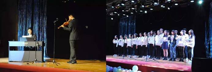 伴着钢琴与小提琴的精彩合奏《查达尔什舞曲》和合唱团的一首《somethingjustlikethis》,晚会拉开序幕。精彩的表演使全场气氛升温,把同学们带进了属于艺术表演的世界。