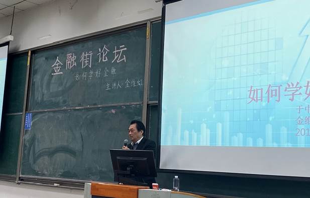 2019年11月26日晚上,best365足球官网第72期金融街论坛——如何学好金融学在沙河主教110举行。本期论坛邀请华章投资控股有限公司董事长、国内知名金融管理专家金维虹老师,就“如何学好金融学”这一主题进行了交流,公司100余名研究生同学参加了本次论坛。