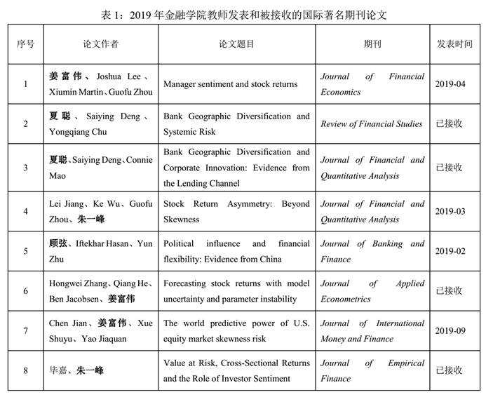 2019年,best365足球官网教师的论文发表获得突破性进展,姜富伟、夏聪、朱一峰、顾弦等4位青年教师在金融学与经济学国际名刊发表和被接收论文8篇。其中,在金融学顶级刊物《Journalof Financial Economics》《Review of Financial Studies》和《Journal of Financial and Quantitative Analysis》发表和被接受论文4篇,在金融学和经济学知名期刊《Journal of Banking and Finance》《Journal of International Money and Finance》《Journal of Empirical Finance》和《Journal of Applied Econometrics》发表和被接受论文4篇。此外,best365足球官网青年教师尹力博、郭豫媚等还在金融学和经济学其他各领域知名期刊《Journal of Futures Markets》《International Review of Economics & Finance》《China Economic Review》和《Energy Economics》发表论文4篇。