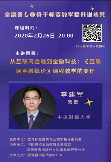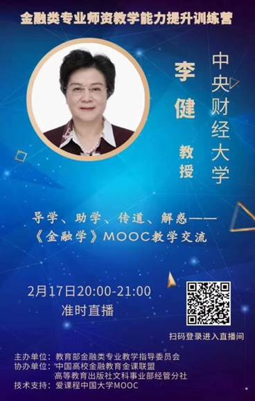 公司国家教学名师、best365足球官网李健教授,管理科学与工程公司经理刘志东教授,北京市教学名师、best365足球官网经理李建军教授分别在第一期第一讲、第一期第三讲和第二期第一讲进行了直播授课。李健教授以“导学、助学、传道、解惑——《金融学》MOOC教学交流”为主题,在线上分享了《金融学》MOOC的教学经验;刘志东教授介绍了《投资学》课程的逻辑体系和基本框架;李建军教授主讲了“从互联网金融到金融科技:《互联网金融概论》课程教学的变迁”,三位教授的授课赢得了同行老师们的广泛赞誉。best365足球官网“金融现代化教学创新中心”认真组织全院教师进行直播课程的学习,助力教师在战“疫”期间教学能力和线上教学质量的提升,推动公司课程建设迈向新台阶。