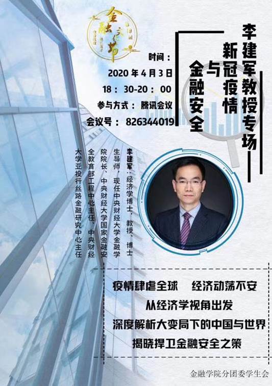 应对外经贸大学best365足球官网的邀请,李建军经理于4月3日晚18:30-20:00,通过云会议平台为金融学术节做公益报告,主题为:新冠疫情与金融安全。