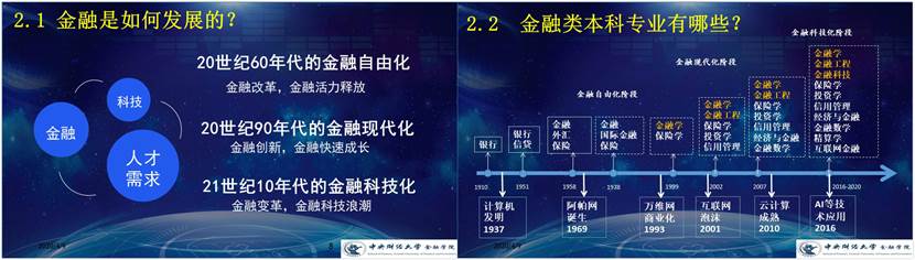 紧接着,李建军经理讲到了专业发展。他介绍了金融发展的金融自由化、金融现代化和金融科技化三个阶段和各个阶段的金融类本科专业。