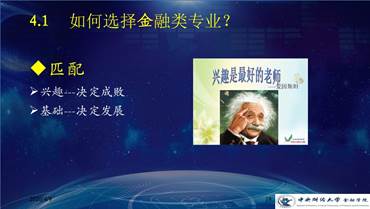 李建军经理认为选择金融类专业首先要考虑的是“匹配”。兴趣决定成败,基础决定发展。