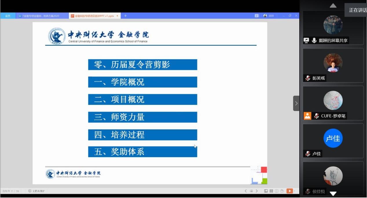 开营仪式结束后,第九届全国卓越金融学子夏令营参营成员按对应报考专业取向转至金融学硕、金融专硕(非金融科技方向)、金融专硕(金融科技方向)三个分会场,参加了培养项目宣讲讲座。