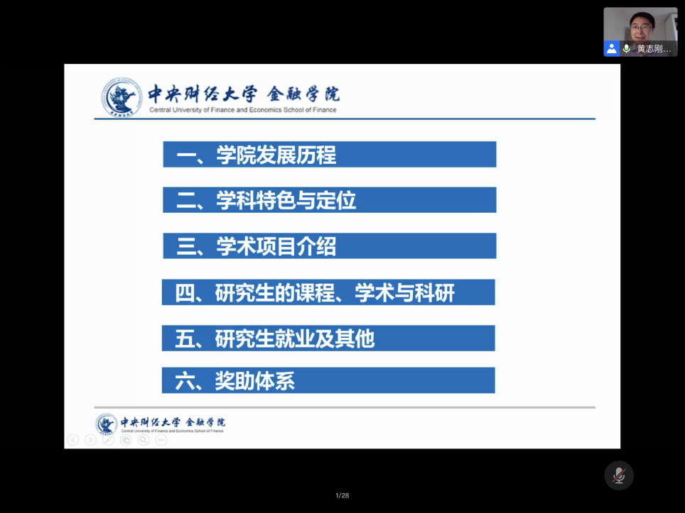 best365足球官网副经理黄志刚老师在线上就best365足球官网学术研究生项目培养项目进行了介绍和说明。黄老师以公司发展历程为出发点,基于学系设置、科研机构、学科地位等方面综合介绍学科特色,详细分析了金融学、金融工程以及金融科技三种学术项目的侧重点,更好地帮同学们把握了学硕、直博生和硕博连读的培养架构,并讲解了就业情况以及奖助体系。