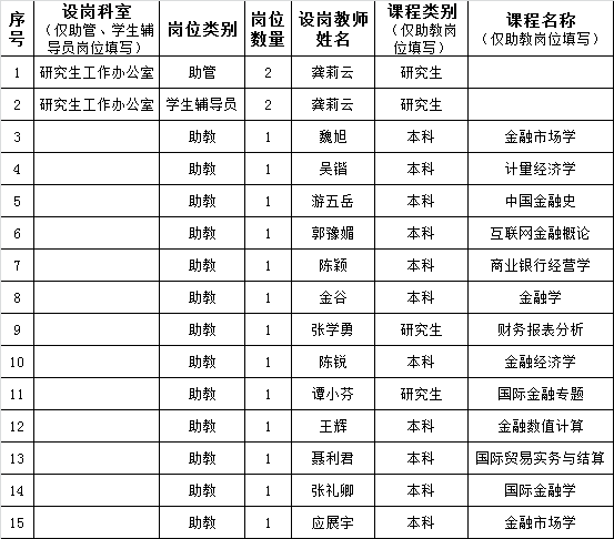 2020-2021学年第二学期“三助一辅”公司设岗情况