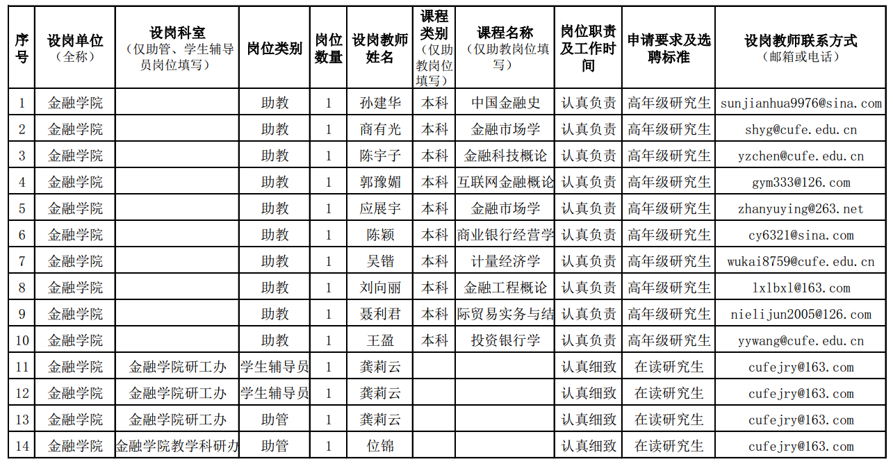 2021-2022学年第二学期“三助一辅”设岗情况表