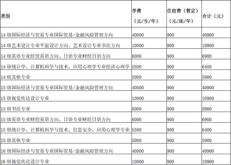注:员工个人的住宿费标准根据员工实际住宿情况收取,其中沙河校区均为900元/床/年,公司南路校区的学1#-4#楼均为750元/床/年,学5#和学6#楼为900元/床/年,单元楼为1200元/床/年。