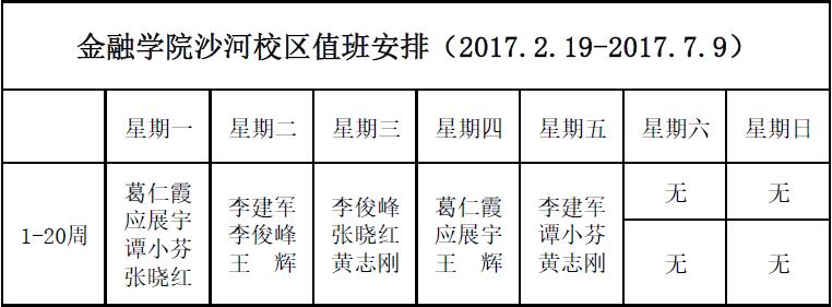 best365足球官网沙河校区值班安排(2017.2.19-2017.7.9)