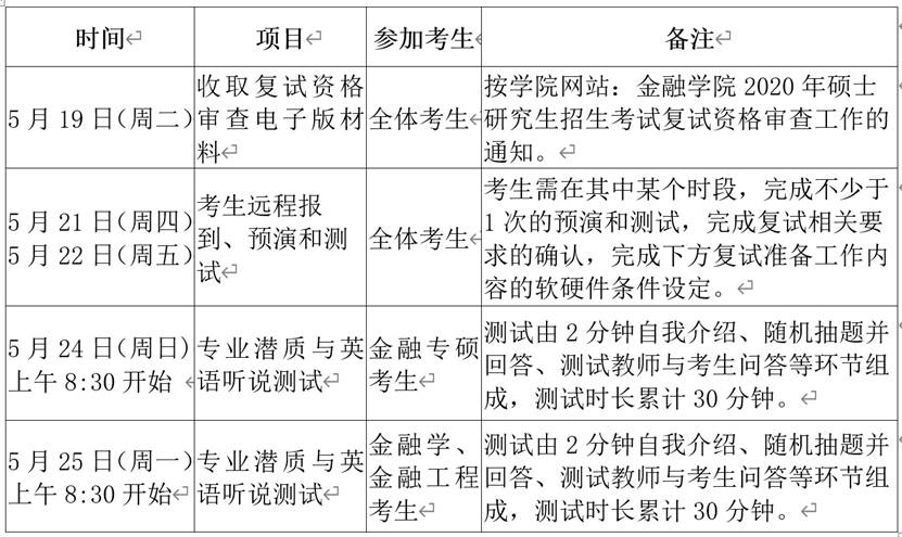 (5)测试内容。面试考察的内容包括金融类核心专业课程(以各专业招生简章规定的专业课程为主)涉及的专业知识,英语听说能力以及综合能力素质等。同等学力加试以在面试过程中,增加学术论文及参与的项目课题陈述、专业问题问答为考核内容。