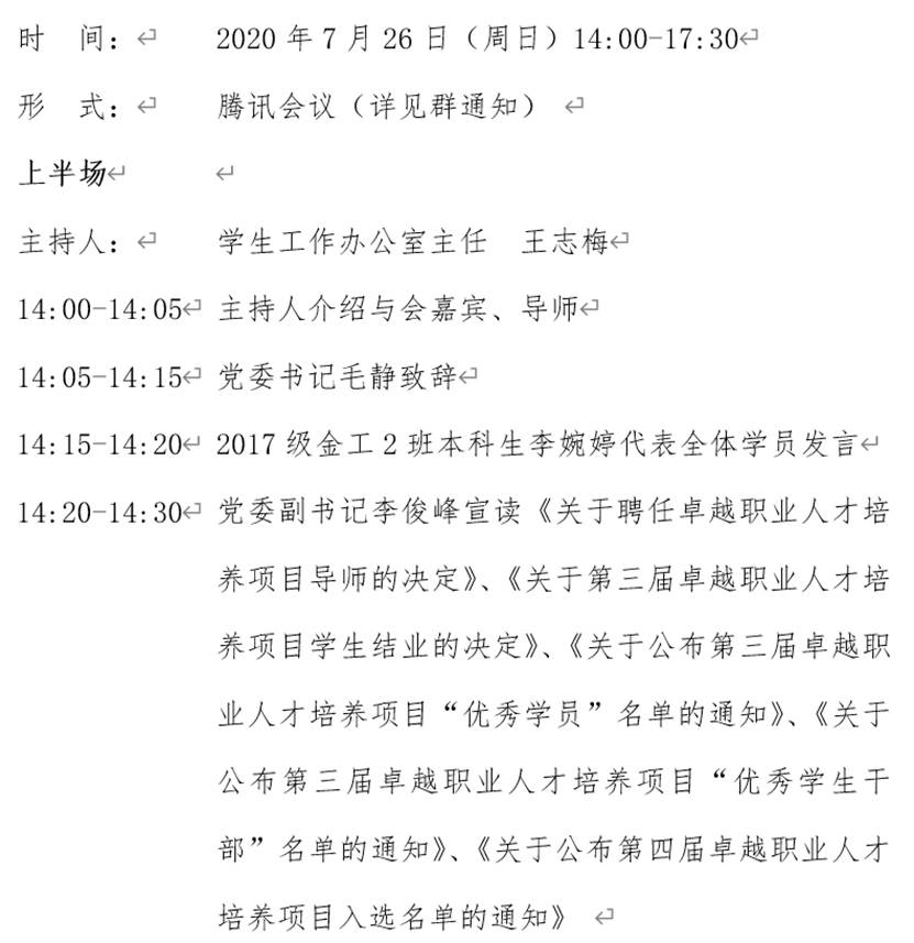 卓越职业人才培养项目导师见面会与职业发展论坛暨第三届结业、第四届启动仪式议程