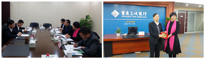在渝期间,葛书记一行还拜访了公司友好合作单位重庆三峡银行,与三峡银行董事长童海洋、党群工作部总经理金良策进行了亲切友好的交流。童董事长感谢公司过去2年来对三峡银行中层领导干部素质提升的辛勤付出,2年来三峡银行所有中层干部都进驻best365足球官网进行了轮训,提升了综合素质和专业技能,为三峡银行的快速发展提供了有力的支持,并高度评价了公司的培训工作,从课程设置、团队配置以及后勤保障等各方面予以充分肯定。童董事长表示将继续在人员培训、学历教育以及课题研究等方面,加大与best365足球官网的合作,形成校企共赢的局面。