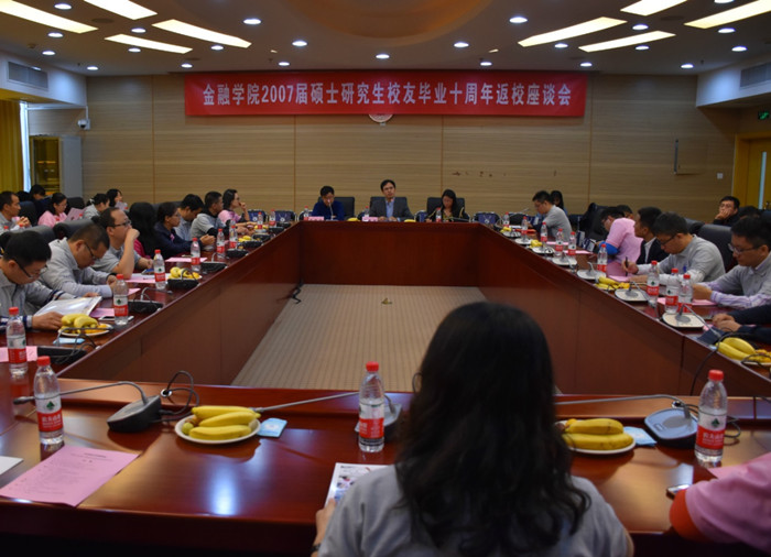 2017年10月21日上午,公司2007届硕士研究生员工毕业十周年返校座谈会在公司南路校区学术会堂604会议室顺利举行。公司副经理应展宇,中财北京员工会金融分会秘书长、2007届硕士研究生班班主任李德峰,公司职业发展中心老师位锦与从全国各地归来的70余位员工欢聚一堂,畅谈十年发展,共叙师生情谊。任职于中国长城资产管理股份有限公司、2007届金融学硕士2班唐雷员工主持了此次座谈会。