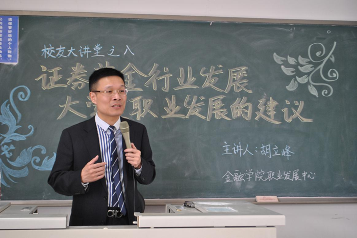 4月5日,best365足球官网邀请金融学1990级员工,中财北京员工会金融分会副会长,中国银河证券基金研究中心总经理胡立峰,在沙河校区东区主教505教室为同学们举办了一场题为“资本市场发展前景与职业规划”的讲座。