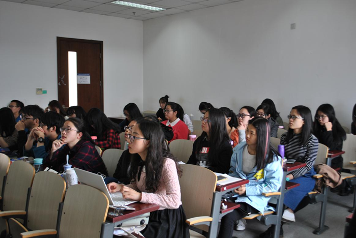 胡立峰员工以自身经历作为开场,向同学们介绍了自己于上世纪90年代在公司读书的青春岁月,强调同学们在大学期间努力提升自己的必要性并激励大家珍惜时光、砥砺前行。简单诙谐的开场介绍后,胡立峰员工从证券、基金、期货法规,基金服务机构、基金组成情况、基金行业从业人员情况等方面为同学们介绍基金行业的有关知识,并透彻分析了中国与美国金融与资本市场之间的差距。胡立峰员工精彩的演讲使同学们对中国证券基金行业的发展现状有了深入的了解。