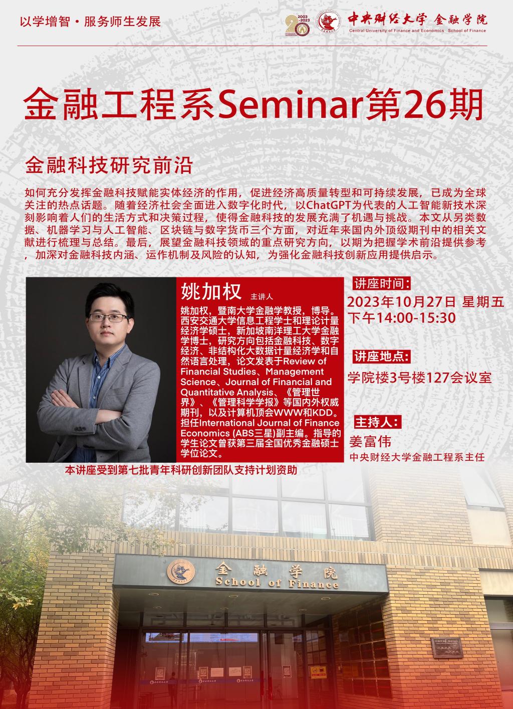 姚加权 | 金融工程系Seminar第26期