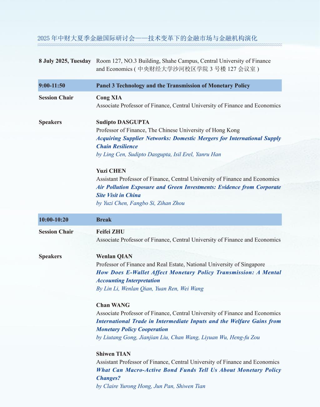 2025年中财大夏季金融国际研讨会——技术变革下的金融市场与金融机构演化