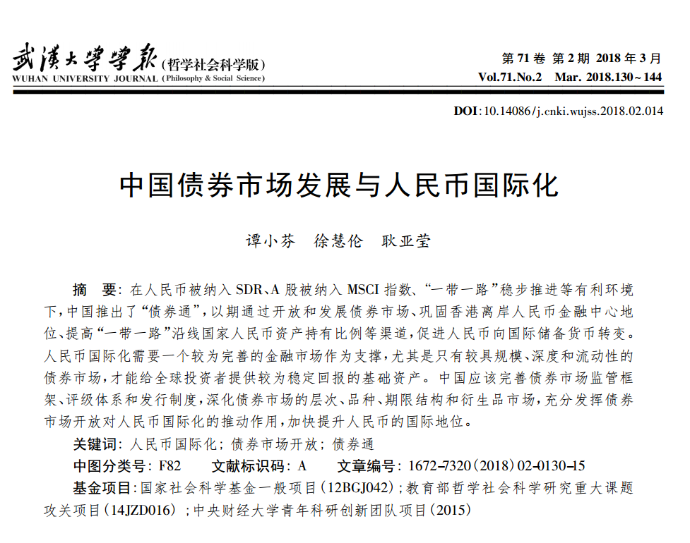 在人民币被纳入SDR、A股被纳入MSCI指数、"一带一路"稳步推进等有利环境下,中国推出了"债券通",以期通过开放和发展债券市场、巩固香港离岸人民币金融中心地位、提高"一带一路"沿线国家人民币资产持有比例等渠道,促进人民币向国际储备货币转变。人民币国际化需要一个较为完善的金融市场作为支撑,尤其是只有较具规模、深度和流动性的债券市场,才能给全球投资者提供较为稳定回报的基础资产。中国应该完善债券市场监管框架、评级体系和发行制度,深化债券市场的层次、品种、期限结构和衍生品市场,充分发挥债券市场开放对人民币国际化的推动作用,加快提升人民币的国际地位。