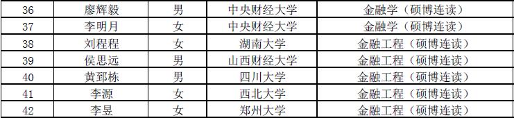 第七届“全国卓越金融学子夏令营”拟入营名单
