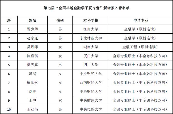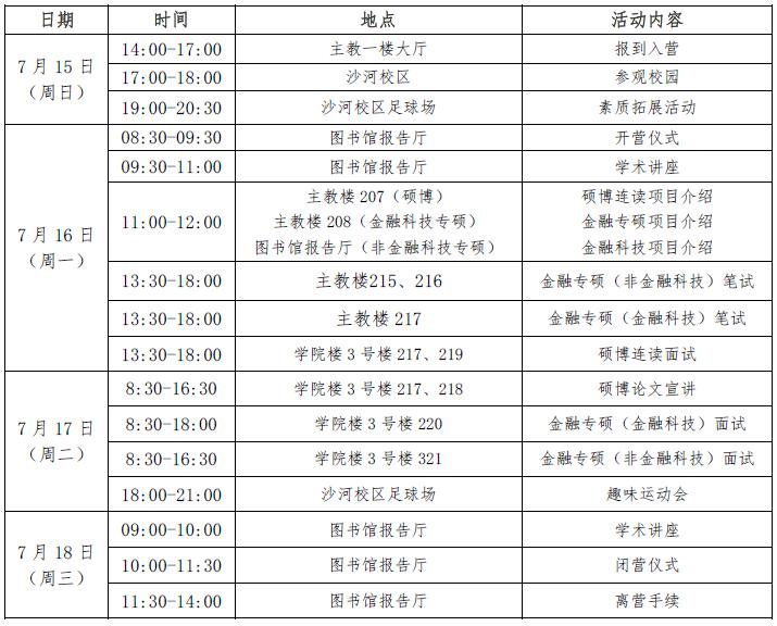 根据公司整体安排,第七届“全国卓越金融学子夏令营”将于2018年7月15-18日在沙河校区举行。