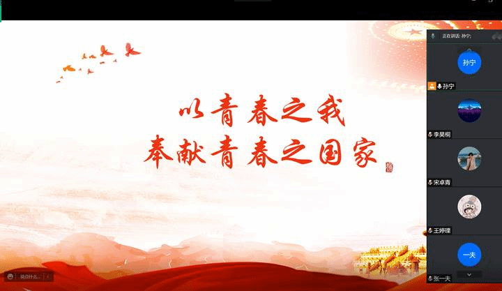 研究生党员孙宁引出对共青团百年征程的思考。本次会议通过讲解和视频的形式,重温了共青团成立的背景以及共青团如何党的带领下,为实现中华民族伟大复兴中国梦作出的重大贡献。