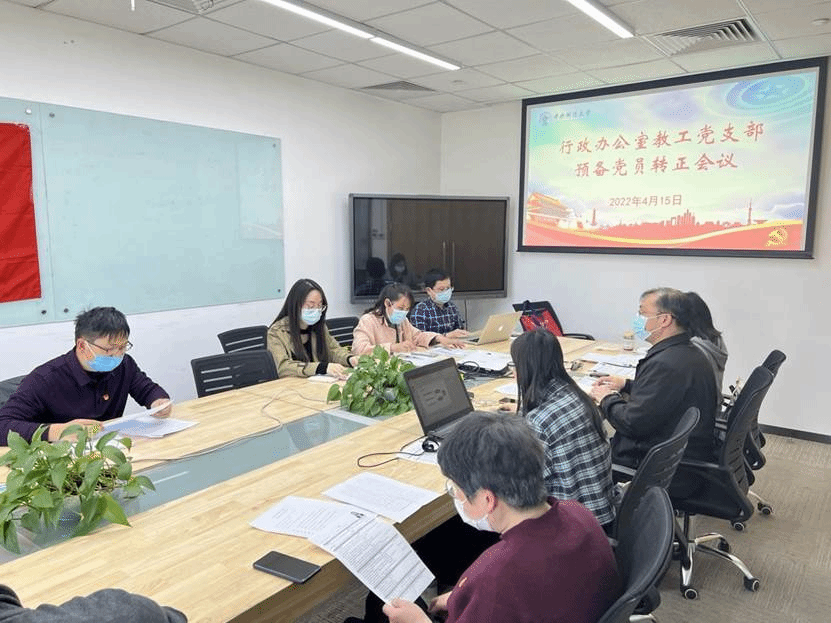 4月15日下午,best365足球官网行政办公室教工党支部在公司资本大厦511会议室召开预备党员转正会议。支部全体党员出席,会议由党支部书记罗卓笔主持。