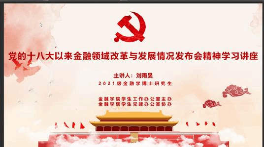 本次讲座旨在带领同学们学习党的十八大以来,金融领域改革与发展发布会的重要金融实践经验,把握未来金融改革发展方向、政策热点,提升政治思想觉悟。本次学习讲座的主要内容分为三个方面:(1)金融领域改革与发展实践情况和经验介绍;(2)金融领域改革与发展热点答中外记者问;(3)金融领域改革与发展未来展望。