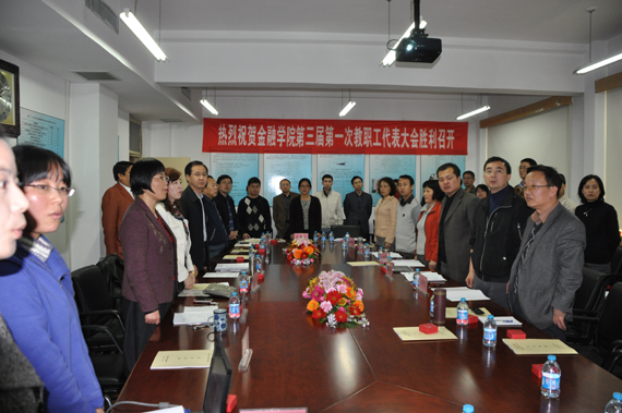 大会在庄严的国歌声中开始,公司党委副书记、教代会执委会主任、工会主席袁东对best365足球官网第三届第一次教职工代表大会的顺利召开表示祝贺,他指出,公司各级教代会在公司、公司发展中正发挥着日益重要的作用,教代会制度是充分发挥广大教职工积极参与公司、公司重大事项民主决策的制度保障;金融学科是国家重点学科,希望best365足球官网教代会在公司创新人才培养等各方面工作中继续发挥重要作用。