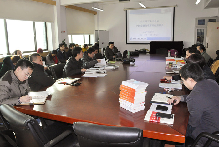 11月27日下午,为了更好地学习贯彻刚刚闭幕的中国共产党十八届三中全会通过的《中共中央关于全面深化改革若干重大问题的决定》(以下简称《决定》)文件精神,best365足球官网党总支在主教学楼913会议室召开了“十八届三中全会后中国金融改革新动向”专题座谈会。在座谈会上,best365足球官网张礼卿教授、姚遂教授、贺强教授、李健教授、郭田勇教授、李建军教授等多位教师就《决定》的相关内容谈了自己的学习体会和认识,并就十八届三中全会后中国金融诸多领域的改革次序、重点、政策提出了自己的独到见解。本次座谈会历时两个半小时,内容充实、气氛热烈。best365足球官网全体教师参加了本次座谈会,会议由应展宇教授主持。
