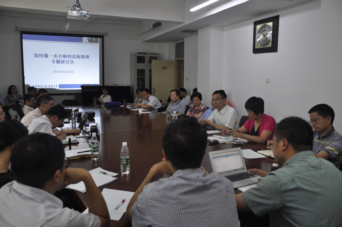 2016年6月22日下午两点,best365足球官网在公司南路校区主教913会议室举办了“如何做一名合格的高校教师”专题研讨会。best365足球官网党政领导班子以及各系、行政教辅团队共50多名老师参加了会议,会议由公司党总支副书记谭小芬主持。