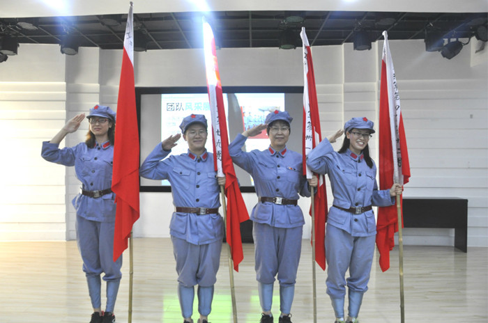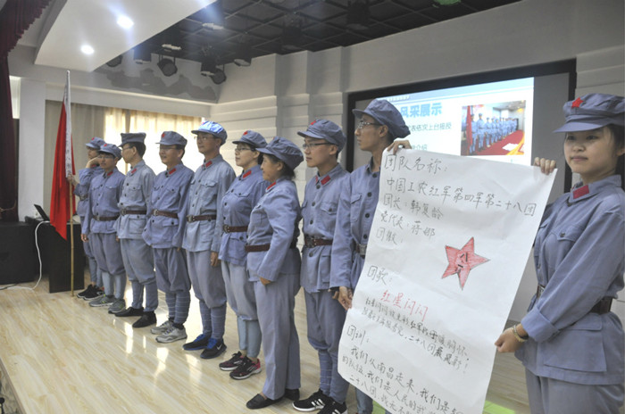 在激情式教学的团队破冰环节,全体师生被整编为中国工农红军第四军第28团、第29团、第31团和第32团,各团用头脑风暴的方法创建自己的团徽、团歌、团训、口号,以生动活泼的形式再现当年井冈山斗争的革命队伍,以唱红歌的方式回忆过去的革命岁月,切实体验革命战争年代的红色激情。