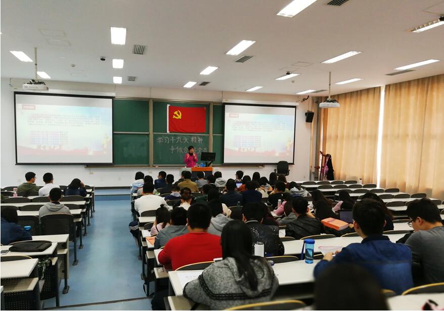 10月27日下午13:30,best365足球官网学习党的十九大精神主题党课在沙河校区西区101教室顺利举行,党课的主讲人为best365足球官网党委书记葛仁霞。来自best365足球官网2017级研究生及各年级本科生的九十余名党员、预备党员和入党积极分子参与了此次党课学习。