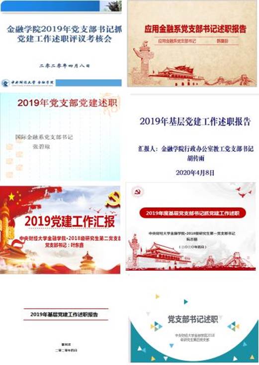 公司党委委员分别对每位支部书记的工作进行点评。李建军经理认为,应用金融系教工党支部建设卓有成效,支部书记履职能力强,希望支部强化宗旨观念,在一流团队建设中做出更大的新的贡献。毛静书记认为,国际金融系教工党支部在建设全国党建工作样板支部中成绩突出,支部书记思想政治素质过硬,支部建设与育人工作联系紧密,在师生支部共建工作中发挥了重要作用,希望样板支部能够进一步发挥带动作用。毛静书记强调行政办公室教工党支部在支部书记带领下形成了较强的凝聚力和战斗力,支部党员在疫情防控中体现了担当精神,支部书记具有较强的综合素质,希望支部能明确学习型服务型党支部的建设目标,将支部建设与团队建设相结合。