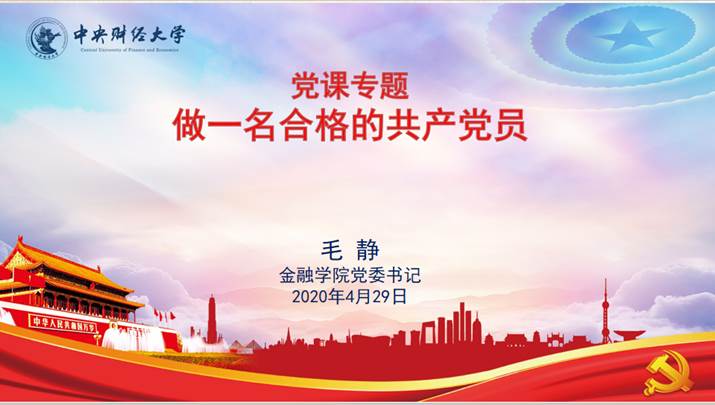 讲座伊始,毛老师从党的应运而生、成长、崛起、开拓进取到改革开放,向同学们阐明了“做一名合格共产党员”的初心和使命。随后,她结合当下的“新冠肺炎疫情”,通过学习习近平总书记系列重要讲话,用一个个鲜活的事例,展现出“一个党员就是一面旗帜”。之后,毛老师分别用红、蓝、黄“三种颜色”向同学们讲述了公司的发展历程、发展中的筚路蓝缕和中财大人的初心和使命。党课最后,她阐述了公司的人才培养目标,并结合习近平总书记对青年人的“五点希望”,建议同学们思考三个问题:我还欠缺什么、我最看中什么、我应该怎么做?希望同学们结合党的重大历史事件,立足于自身,通过思考、通过实践,不断提升自我,成为合格的金融人才,为母校、为祖国再接再厉、争光添彩。