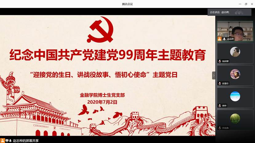 为隆重庆祝中国共产党建党99周年,回顾党的光辉历程、讴歌党的丰功伟绩,深入学习贯彻习近平新时代中国特色社会主义思想和党的十九大精神,不忘初心、牢记使命,以饱满的政治热情迎接建党100周年,根据教育部、教工委、公司和公司相关文件精神,best365足球官网博士生党支部于2020年7月2日晚8点半召开“迎接党的生日、讲战疫故事、悟初心使命”线上主题党日活动。