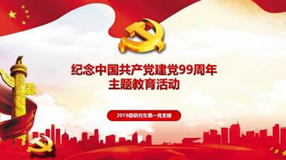 2020年7月3日下午18.00时,为隆重庆祝中国共产党建党99周年,回顾党的光辉历程、讴歌党的丰功伟绩,深入学习贯彻习近平新时代中国特色社会主义思想和党的十九大精神,不忘初心、牢记使命,以饱满的政治热情迎接建党100周年,2019级研究生第一党支部召开“庆祝中国共产党建党99周年”主题教育活动。