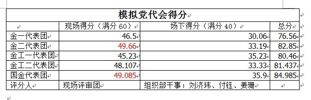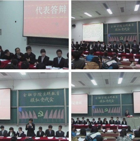 11月21日下午,best365足球官网于沙河校区主教218成功举办了best365足球官网主题教育之模拟党代会。出席模拟党代会的有best365足球官网团总支书记李菊老师、10级辅导员谢海燕老师以及由大一大二各班同学组成的金融1班、金融2班、金工1班、金工2班以及国金五个代表团、评委团、记者团和观众。
