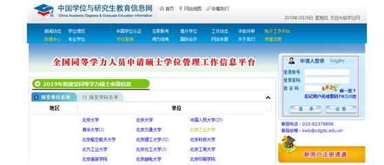 同等学力全国统考网上报名工作通过“全国同等学力人员申请硕士学位管理工作信息平台”(简称信息平台)进行,信息平台将于3月4日—3月25日开通2019年同等学力全国统考报名功能,考生可在报名期间登录信息平台(http://www.chinadegrees.cn/tdxlsqxt/login.shtml?action=forwardIndex),选择考试科目和考试地点,提交考试报名申请。考试报名申请通过公司审核后,方可进行缴费。