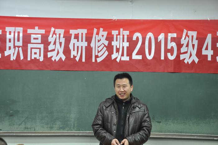 随后,教师代表李俊峰老师进行讲话。李老师也是稍后证券投资学课程的授课老师,他对同学们勇敢地选择在职途中进行再次加油充电表示赞扬,并代表全院老师热烈欢迎大家加入best365足球官网。李老师也衷心的期望大家能多珍惜同学之情,共同学习,把取得硕士学位作为次要目的,学得新知识,结交深厚的同学情谊才是主要目标,这也响应了我们best365足球官网在职研修班的号召“学位只是副产品,知识才是真价值”!