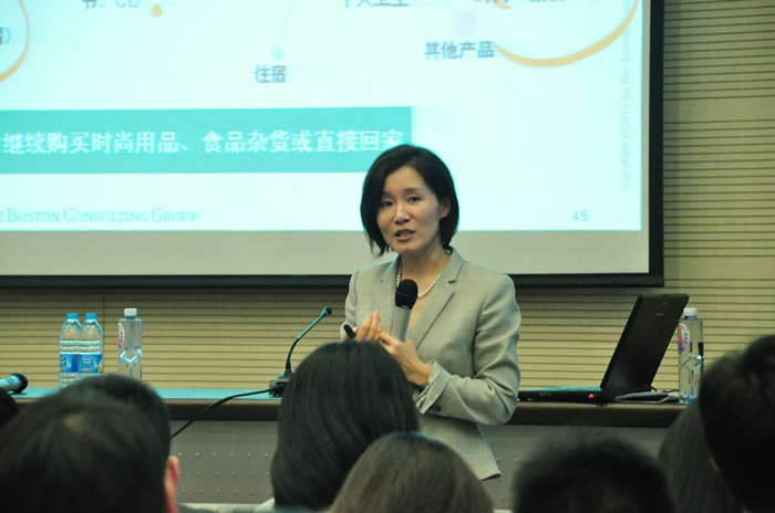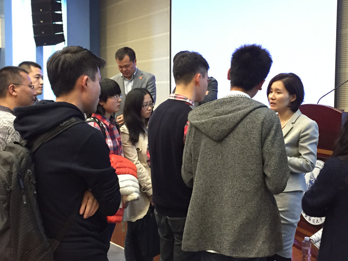 3月29日晚间,公司学术会堂402报告厅座无虚席,更是有诸多的同学或站着或席地而坐,只为能够参与到当晚的讲座中来。此次讲座名为《大数据在金融领域的应用》,由波士顿咨询大中华区执行董事张越女士主讲。讲座结束后同学们纷纷表示:三个小时的讲座可谓是听得酣畅淋漓,意犹未尽。无论是张越女士的讲课环节还是后期的互动环节,全程场面火爆,反响热烈。