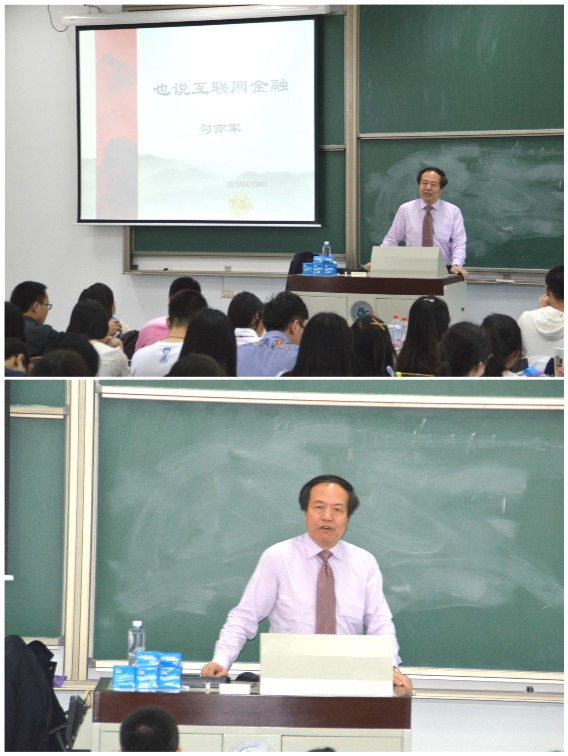4月24日下午,公司西区主教102座无虚席,在职高级研修班《互联网金融》开放课程继续举行,由新时代信托有限公司常务副总裁勾亦军先生主讲。作为一名资深的信托从业人士,勾亦军先生曾先后供职于中泰信托投资公司、弘泰信托投资公司、青岛海协信托投资公司和新时代信托公司等知名信托机构。“信托老兵”不仅是勾亦军先生对自己的定位,他不仅仅是一位信托高管,还是互联网金融领域,特别是众筹问题的专家。多年的从业经验使得勾亦军先生对互联网金融和众筹问题有独特的理解。