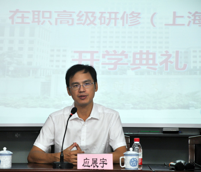 开学典礼在庄严、雄壮的国歌声中拉开了帷幕。公司副经理应展宇教授首先致辞,他表示很高兴在金秋九月来到中财上海班的开学典礼,并向同学们介绍了公司和公司的基本情况。公司被誉为中国财经界的“黄埔军校”,是国家“985优势学科创新平台”项目首批试点高校,是中国第一所有研究生院的高校。他希望同学们要抓住研修深造的机会,注重理论联系实际,关注金融热点,培养学习金融的兴趣,并祝愿学员们大鹏展翅,斩获金秋硕果。