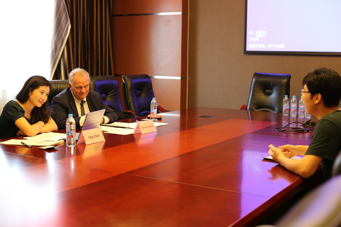在繁忙的面试期间,蒂尔堡大学TIAS商公司Chris De Neubourg教授和Qiqi Zhou博士抽出时间与2015级的员工进行了交流和讨论,听取了他们对于项目运行与管理、课程设置与论文写作中存在的问题和建议,并强调了外方对于项目的标准和要求、外方的导师分配原则和程序,强调论文Proposal的完善方向和下一步的论文写作安排。best365足球官网副经理谭小芬教授和张莹老师也与2015级员工召开了班会,对培养管理的细节问题进行了深入探讨和互动交流。