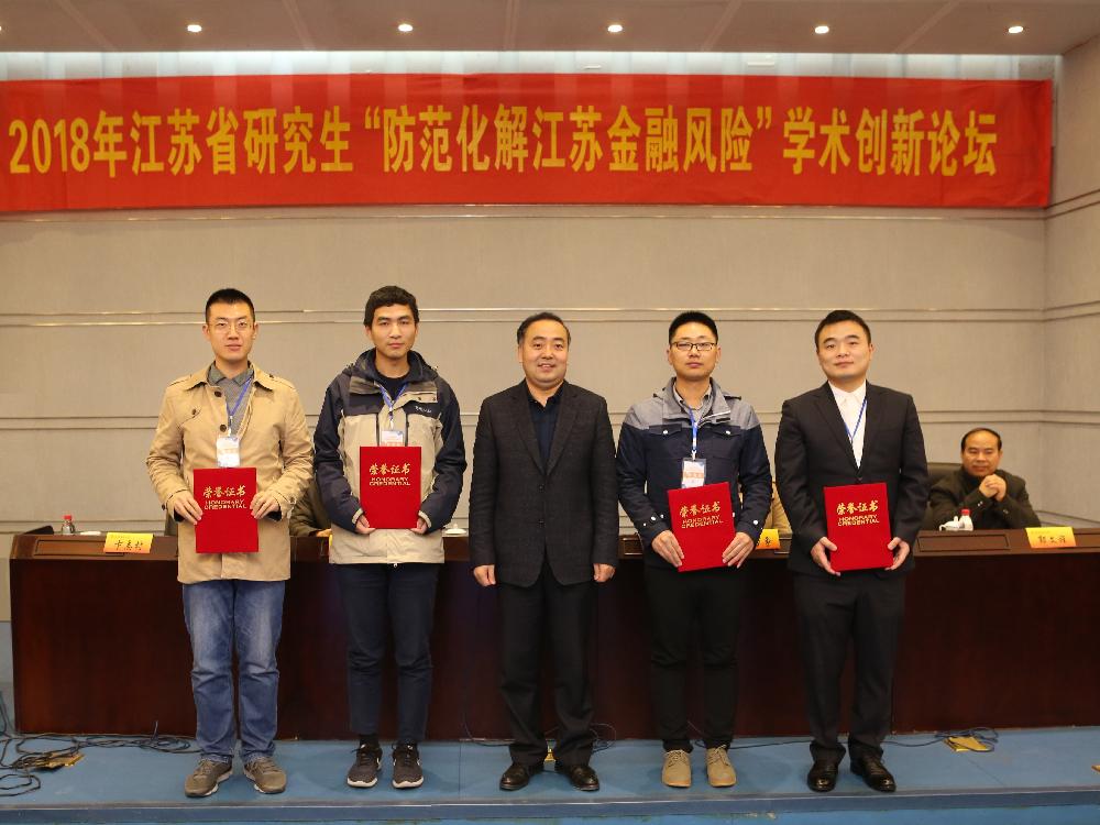 2018年11月24日,2018年江苏省研究生“防范化解江苏金融风险”学术创新论坛在南京财经大学仙林校区举行。本次论坛是有南京财经大学主办,南京财经大学党委研究生工作部、南京财经大学研究生院和南京财经大学best365足球官网共同承办。公司毕嘉同学提交论文,经过论坛学术委员的匿名评审后,获得一等奖。
